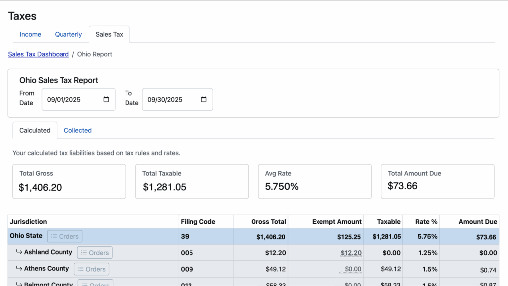We group all of your state sales, and tax collected, by each jurisdiction – state, county, city, even special taxing districts.